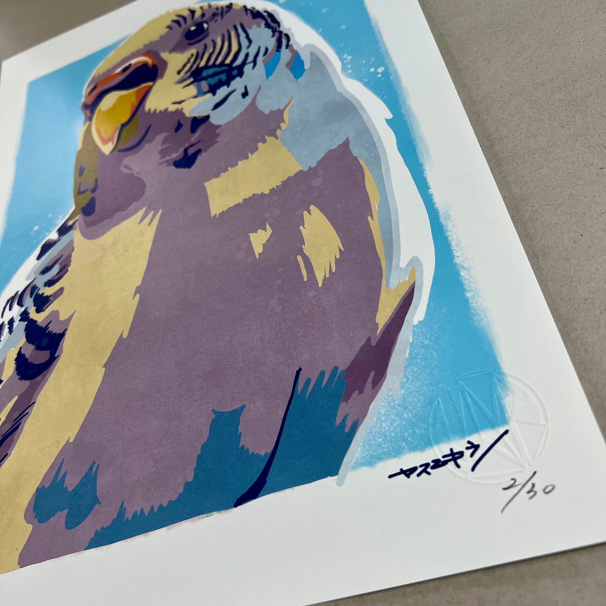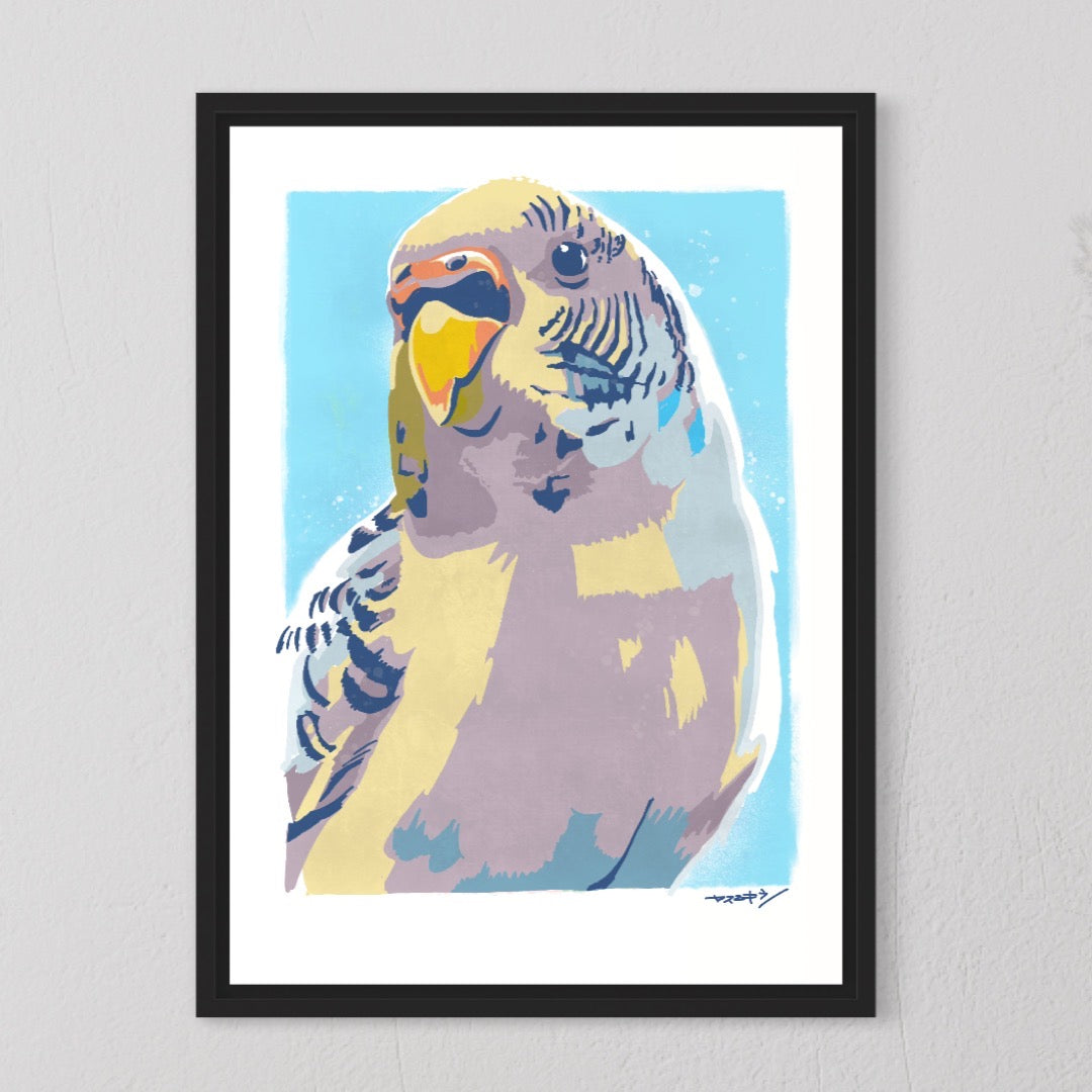 ペットとしてかなりメジャーなセキセイインコさん。昔飼ってた時を思い出しながら友人のセキセイインコさんを描いた作品。