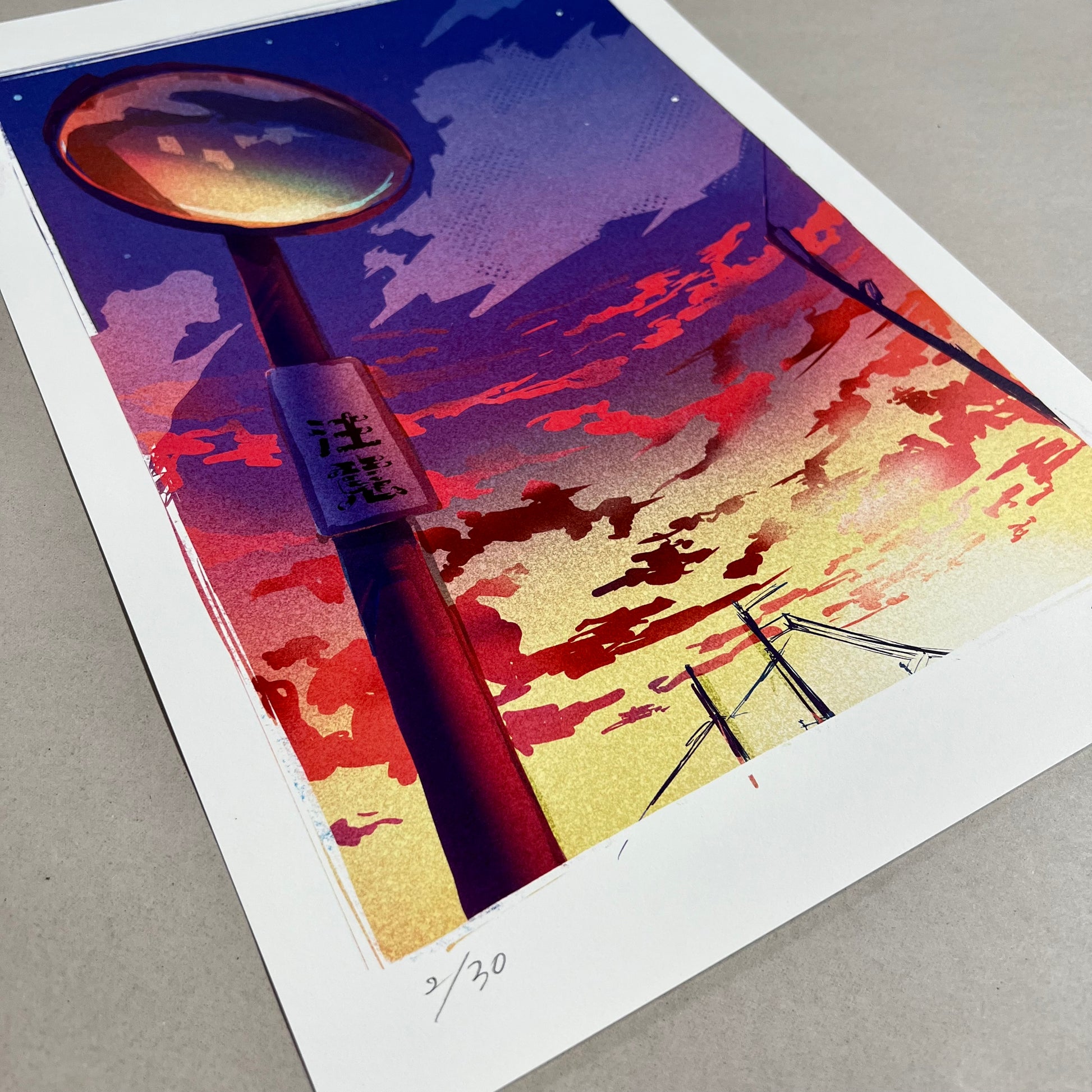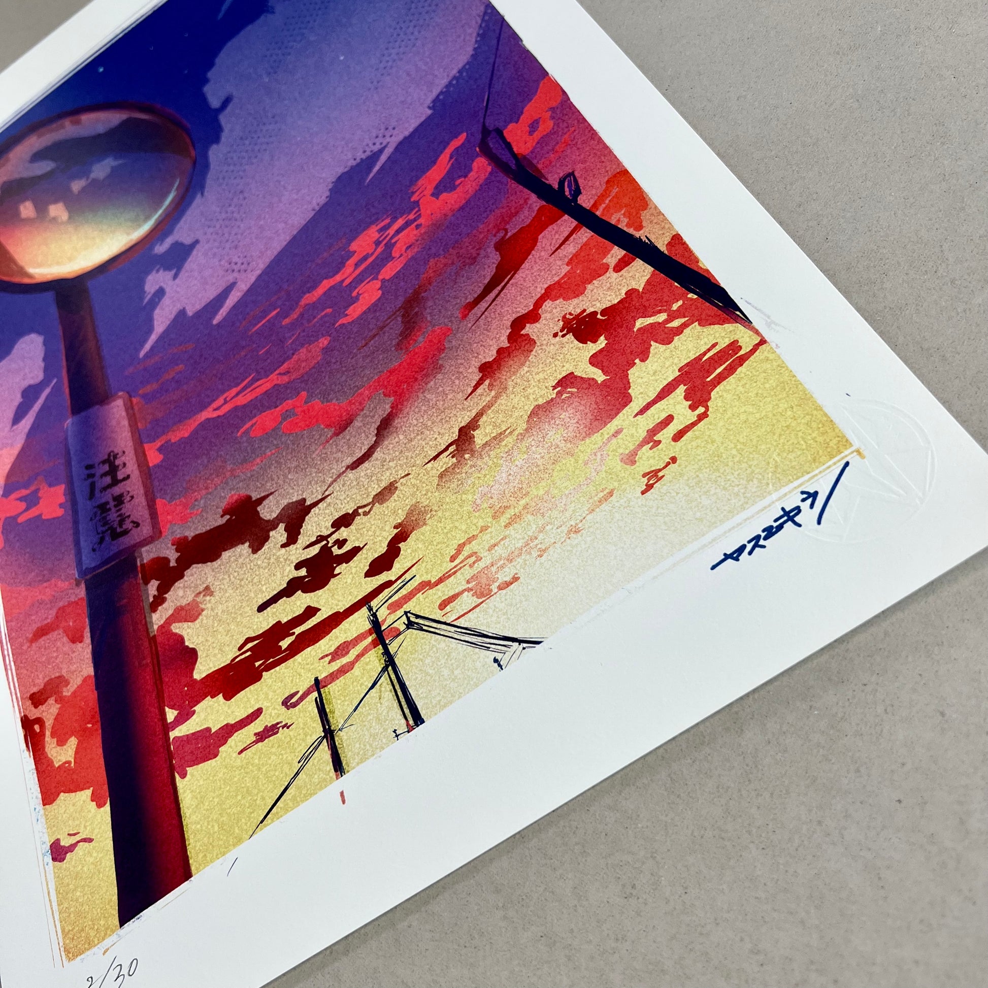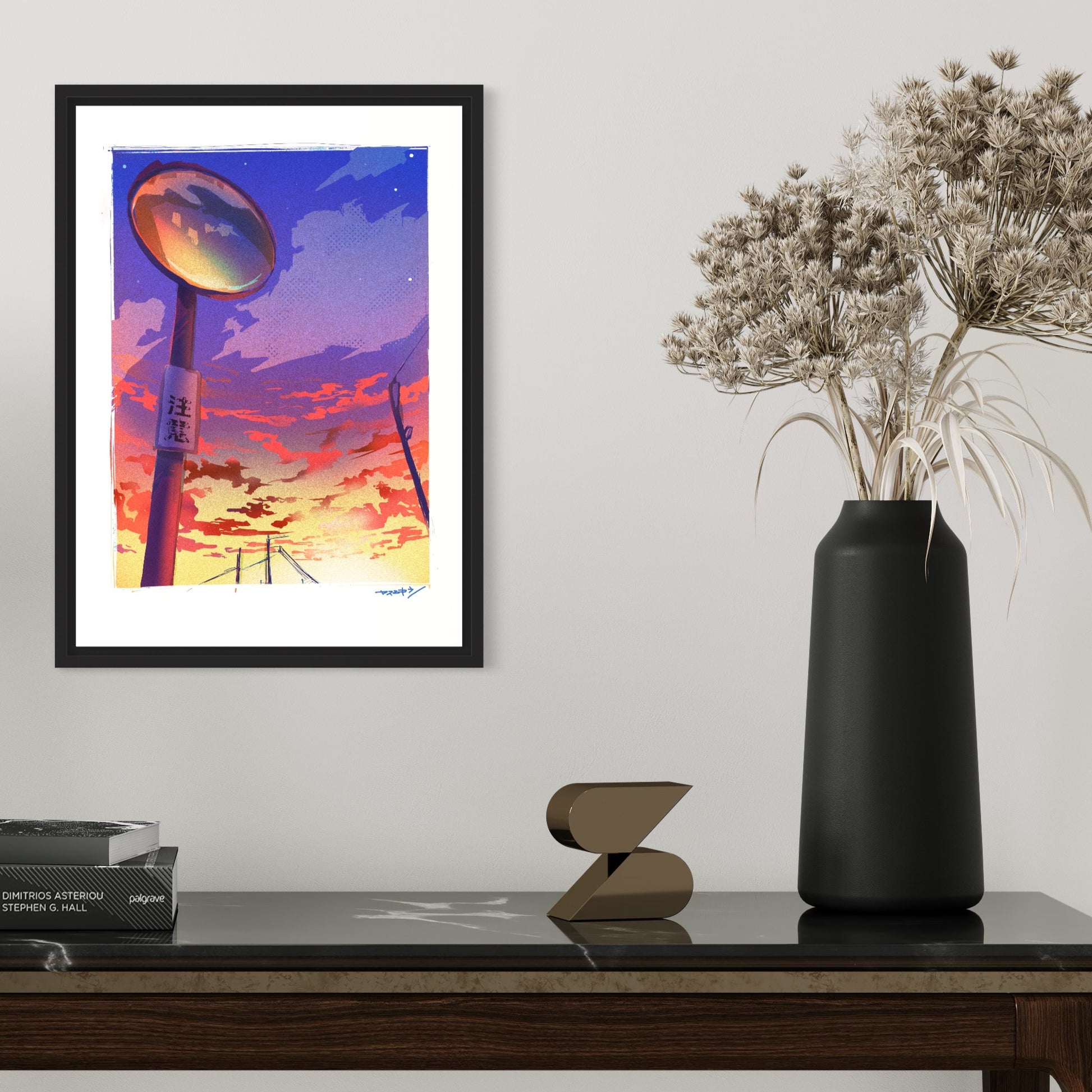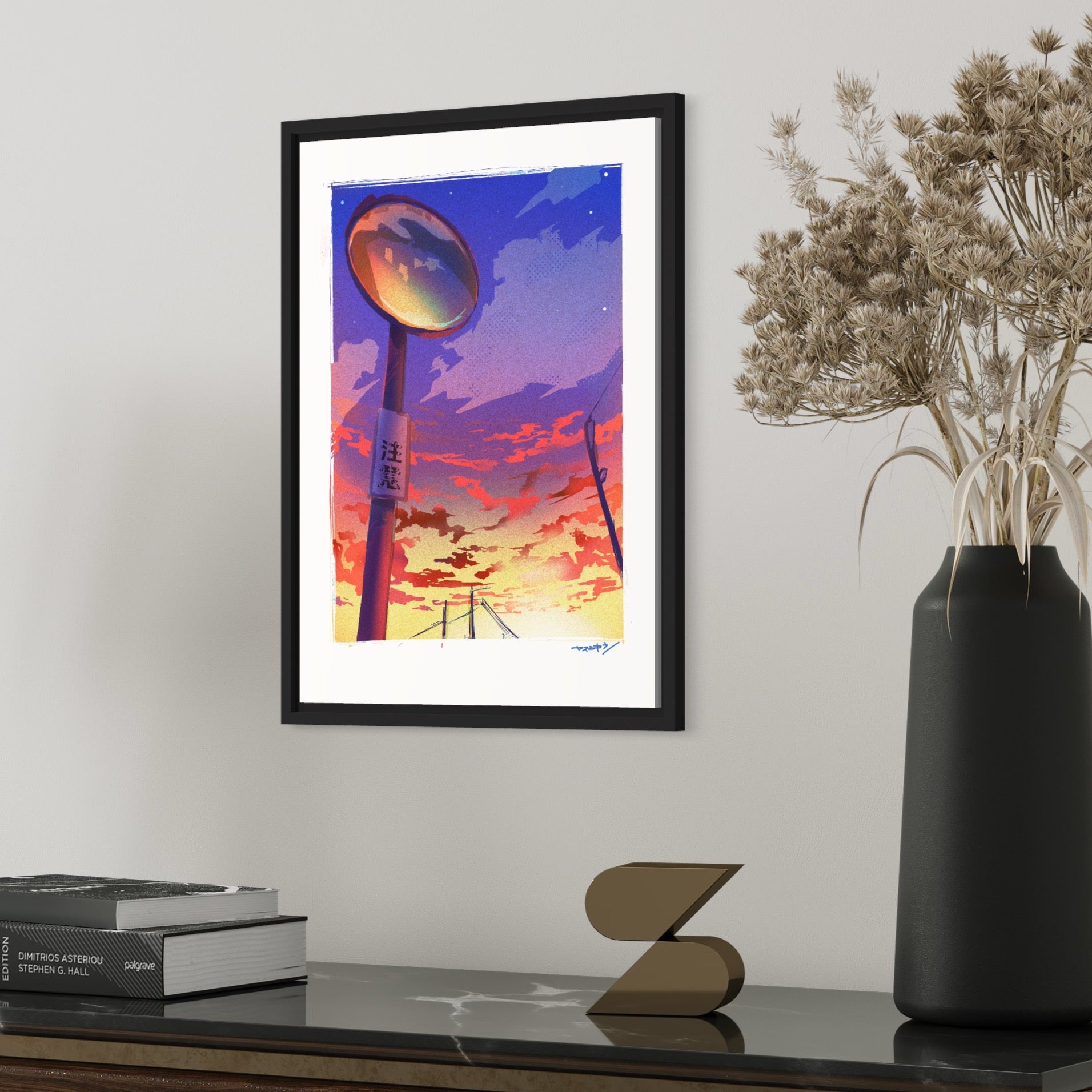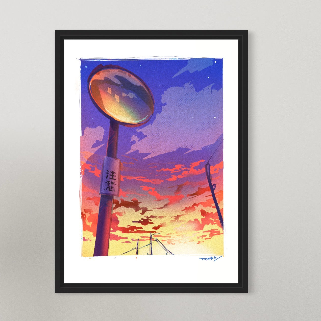 カーブミラーと夕陽 / A3ポスター / 限定 30枚