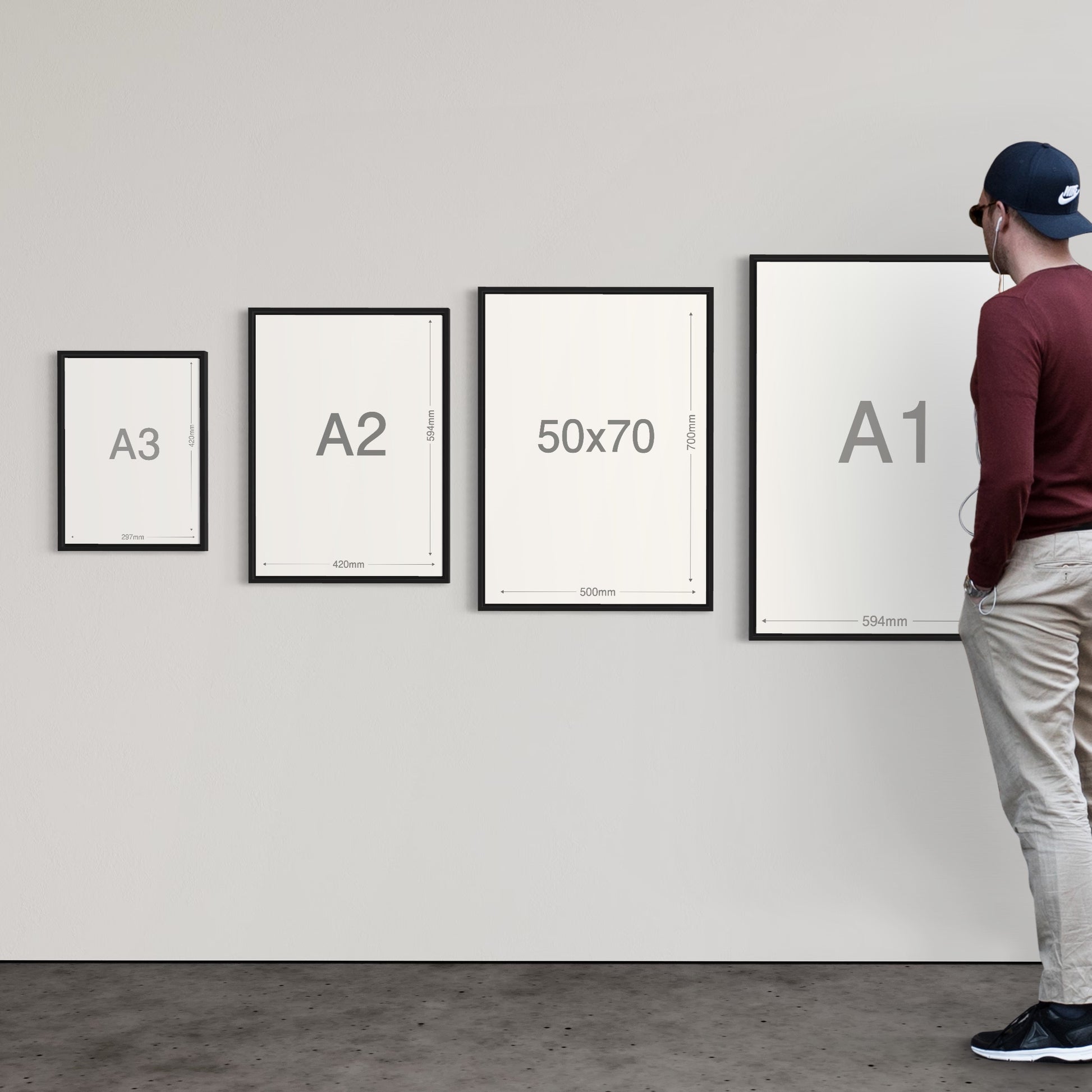 このフレームには、台紙を使う場合は40×50cmサイズのアート、台紙を使わない場合は50×70cmサイズのアートがぴったりです。