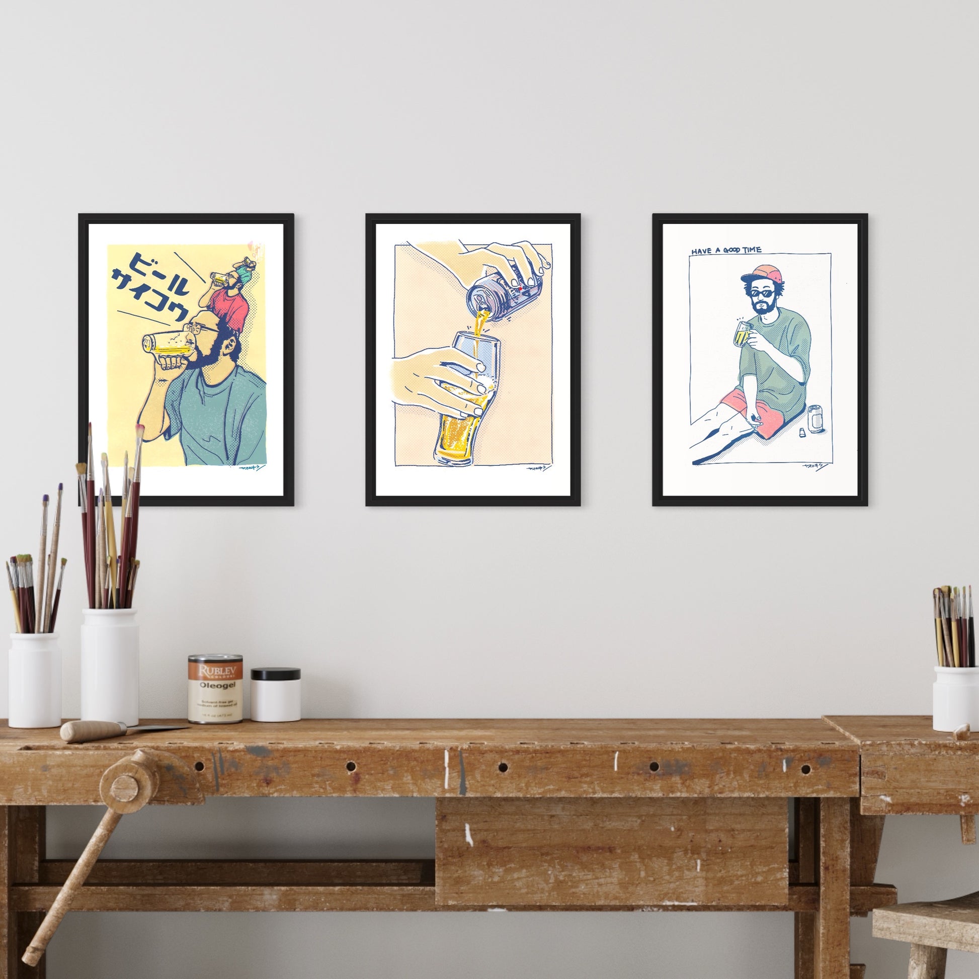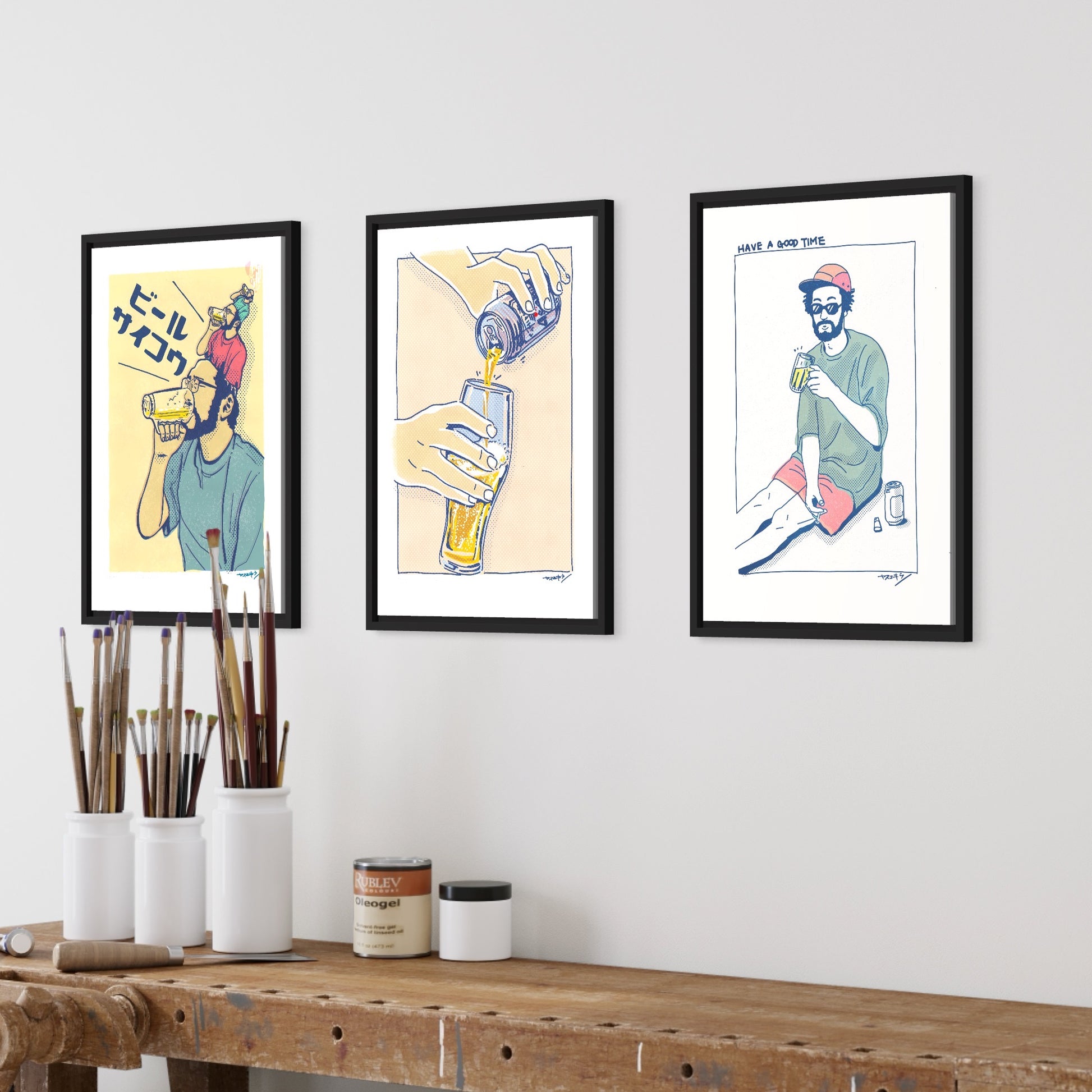 グーッと飲んだ瞬間はこんな感じ。ビール好きがビール好きを思いながら描いた作品。