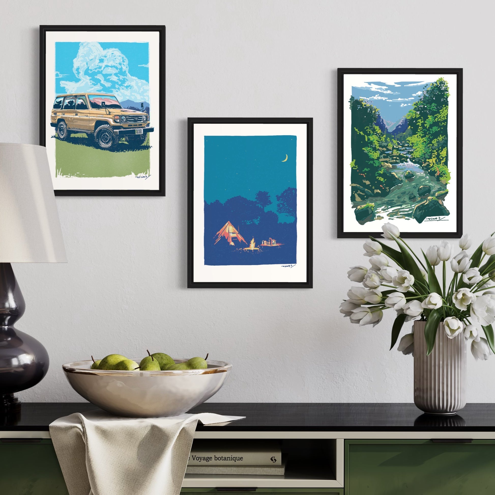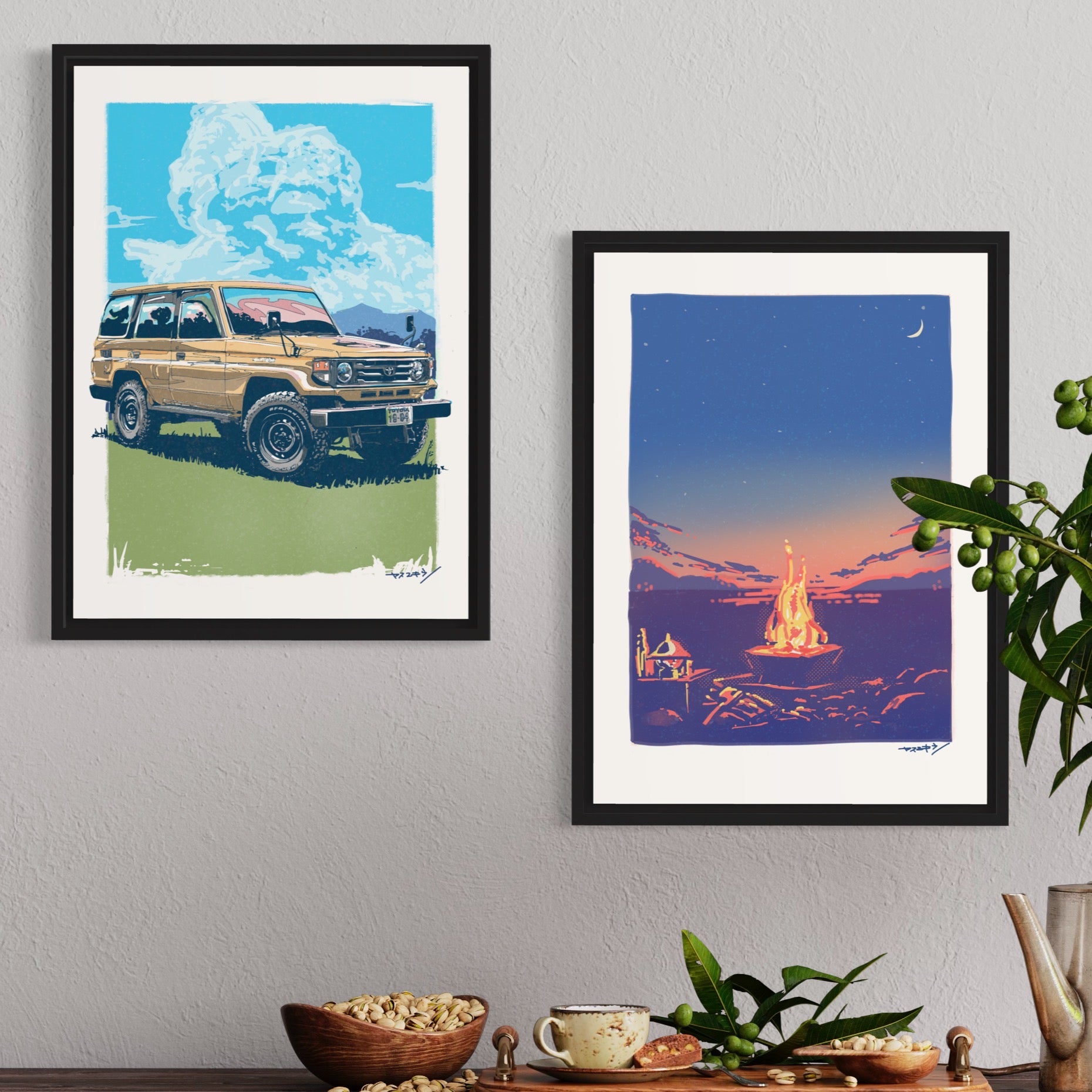 カクカクした形とアウトドア好きがこよなく愛すTOYOTA ランドクルーザー。その中でもイベントなどで出店した際にTYPE-70を描いて欲しいと一番声が多かった車。そんなランクル好きに届けばなと描いた作品