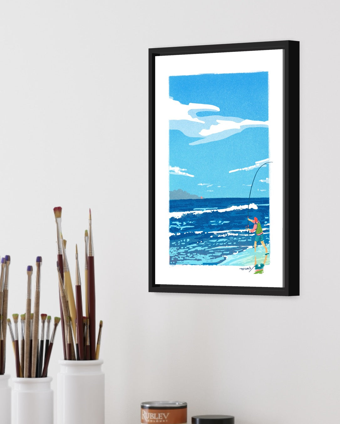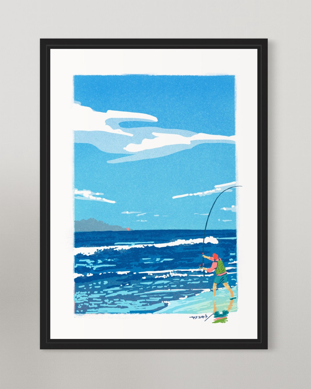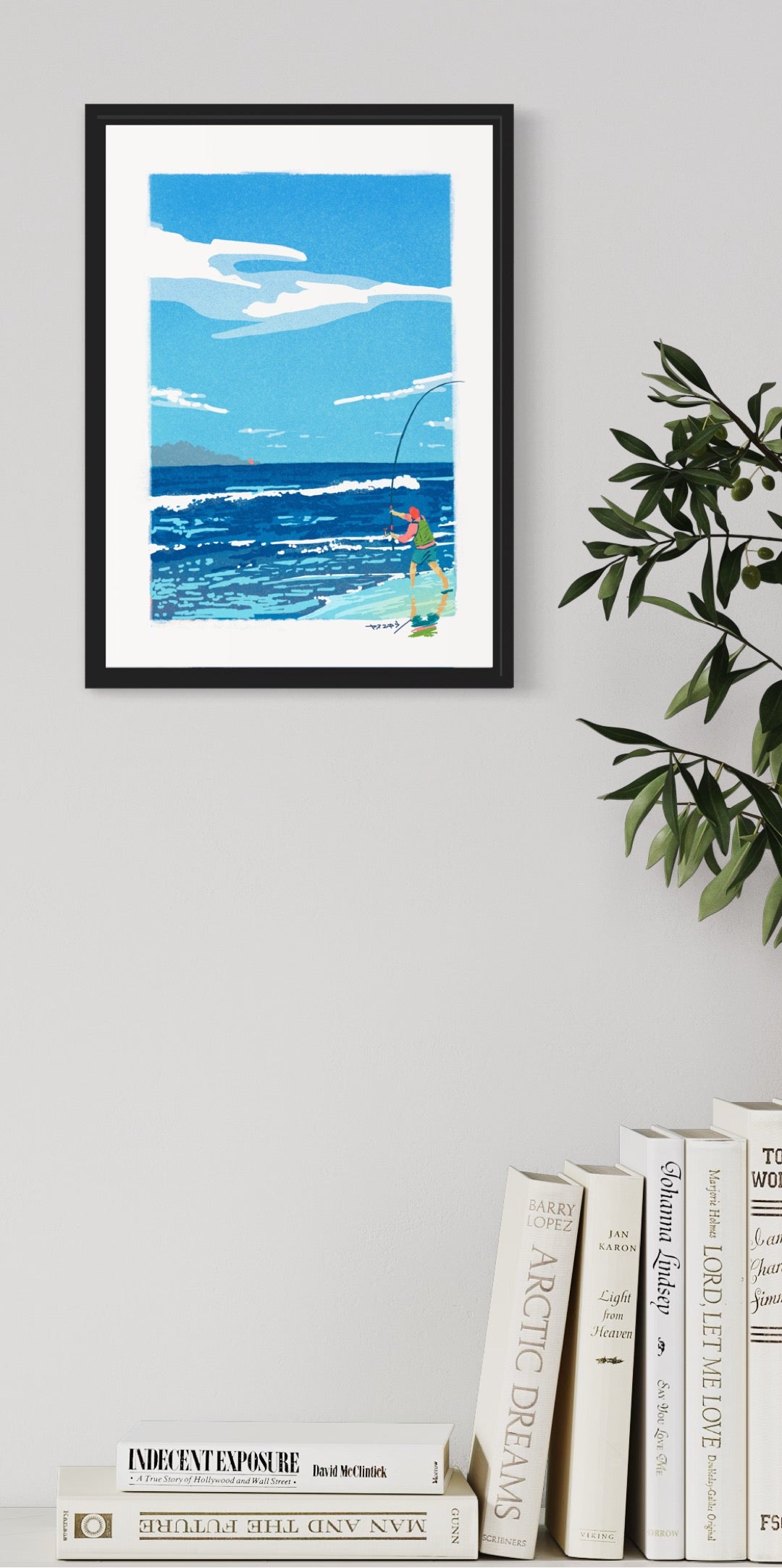 青空の下でキスなのかコチなのかヒラメなのか…とにかく爆釣を願って思い切り投げる気持ちを描いた作品
