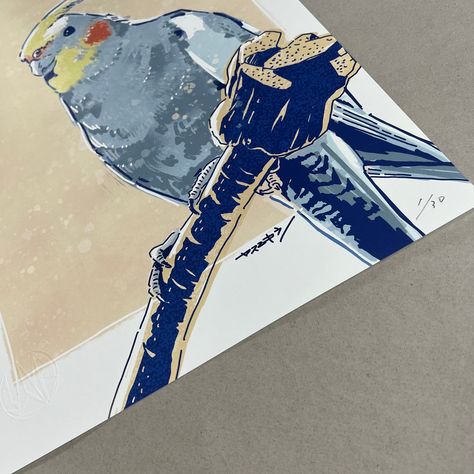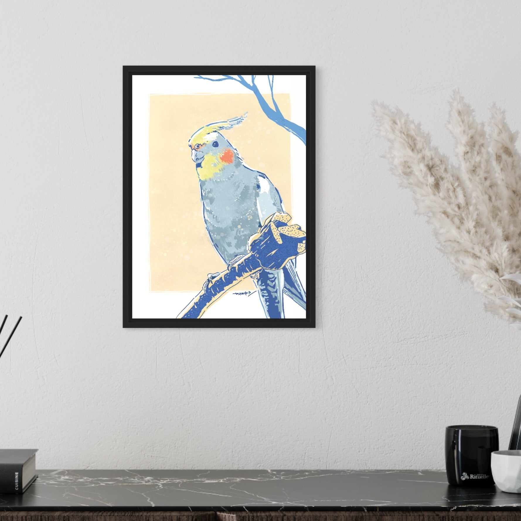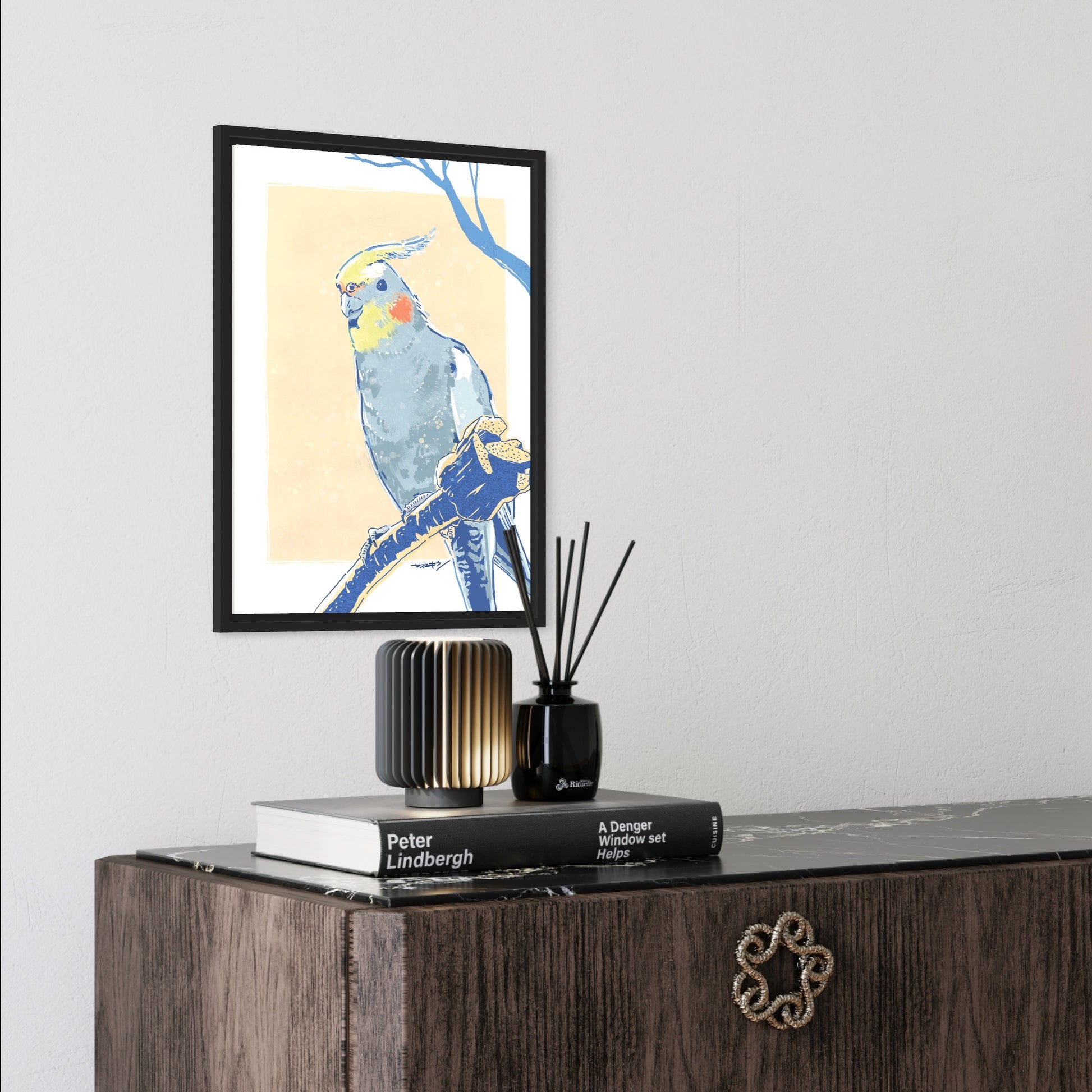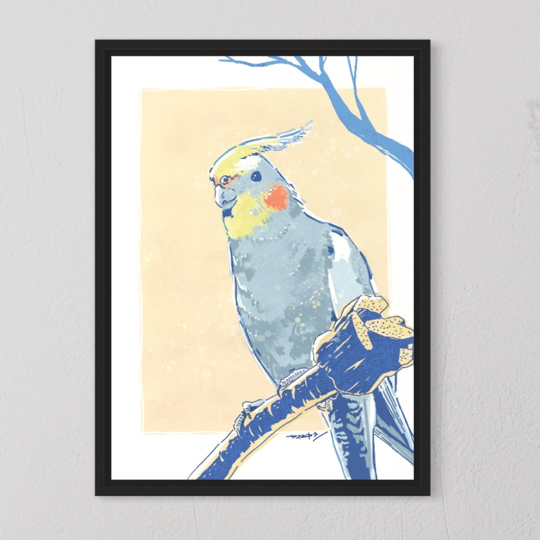 トサカと赤いほっぺが印象的なオカメインコさん。オカメインコファンに是非飾っていただきたい作品。