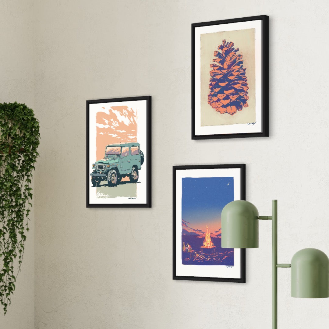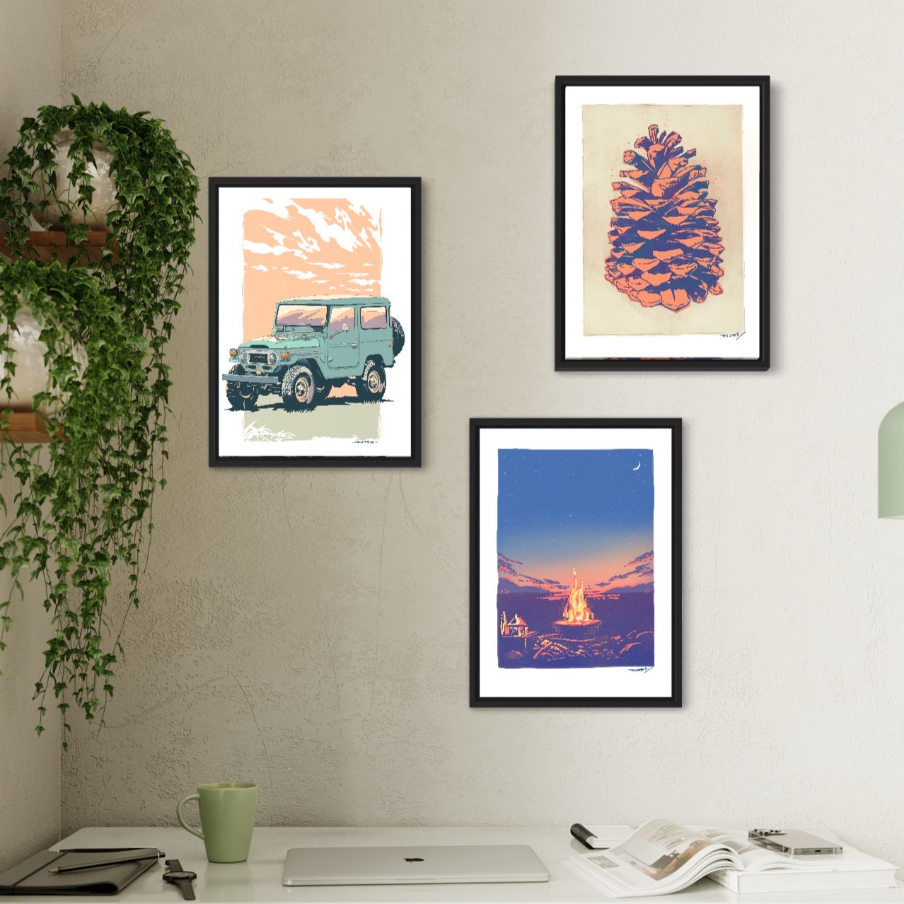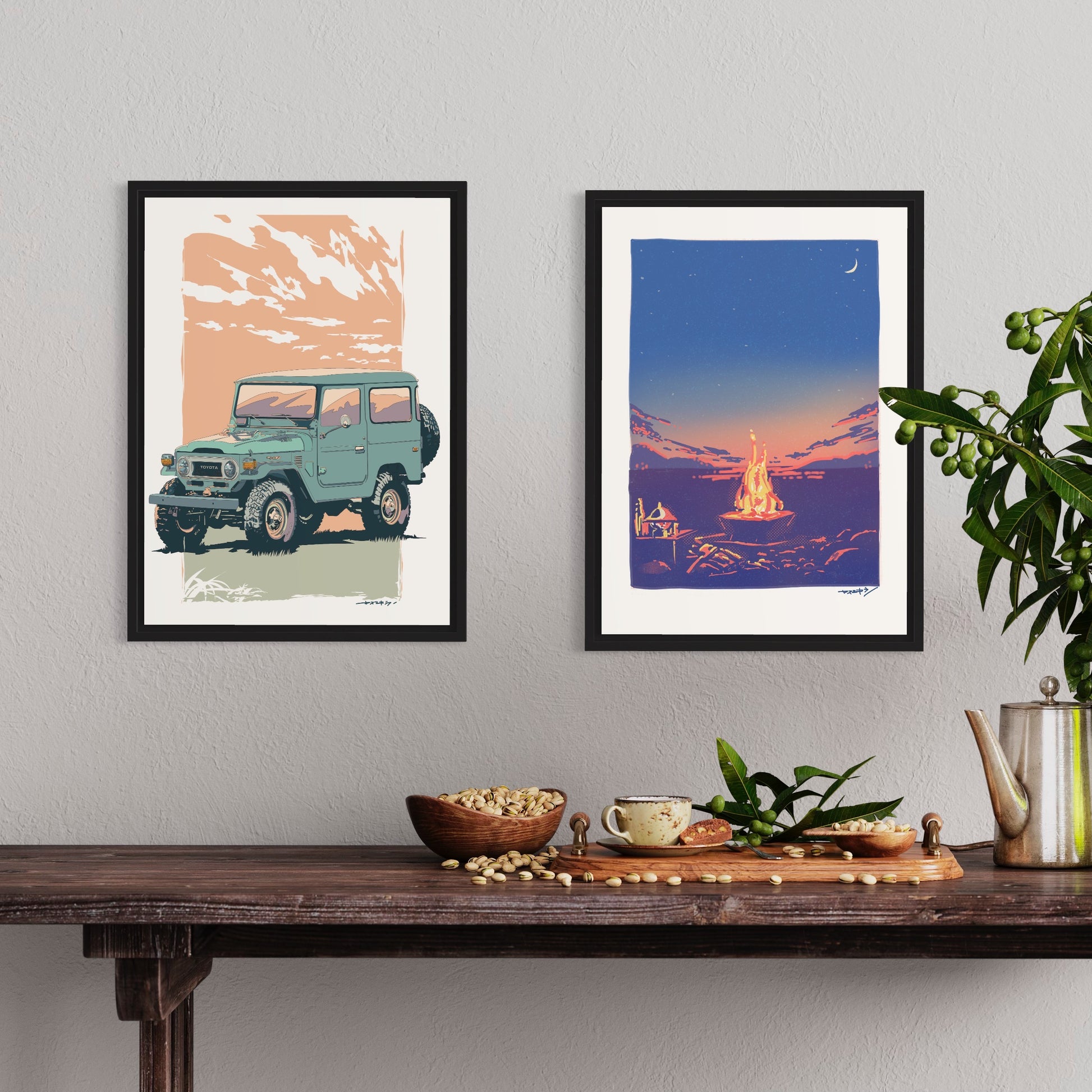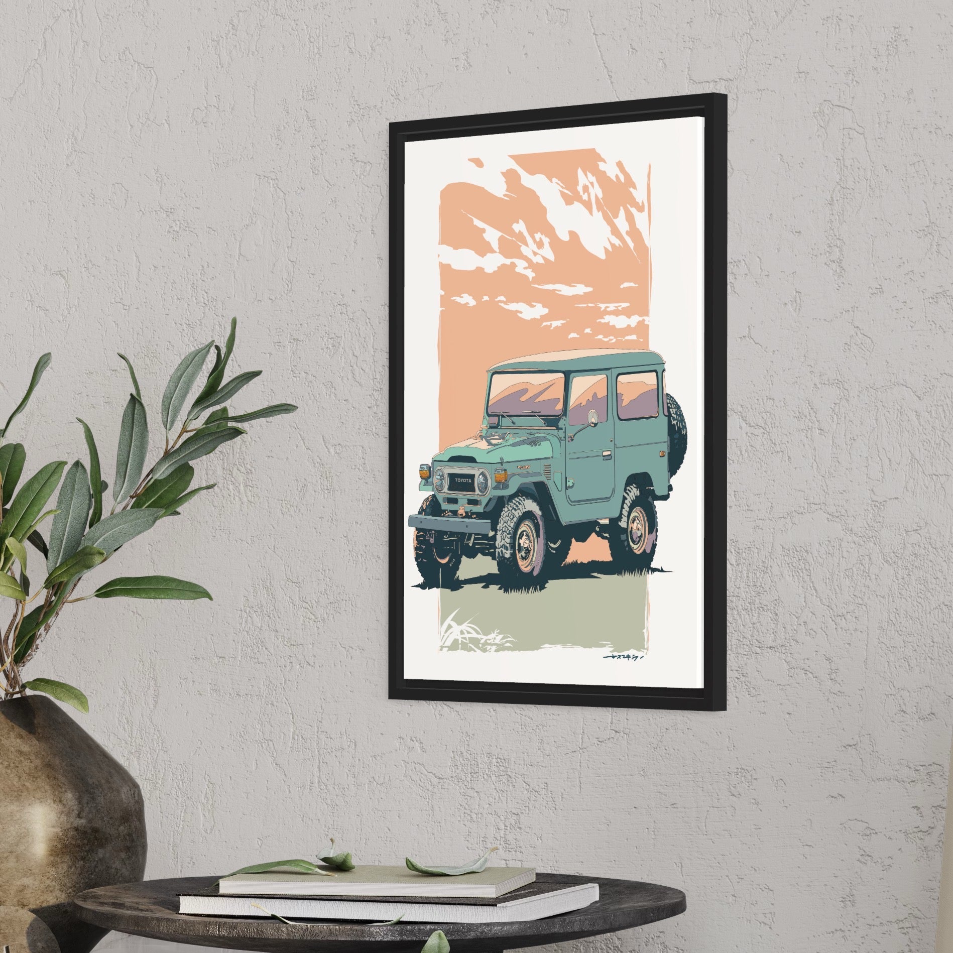 TOYOTAが誇る4x4の最高峰。シンプルなデザインの中にオフロードな無骨さが残るランクル40。実走行できるランクル40がどんどん減りつつある中、せめて絵で残したい、絵で持ちたいと思いながら描いた作品